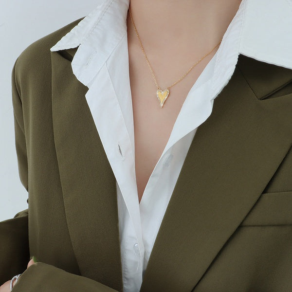 gold or silver tone modern slim metal heart surrounded with pave rhinestones. 17" drop with 3" slack.