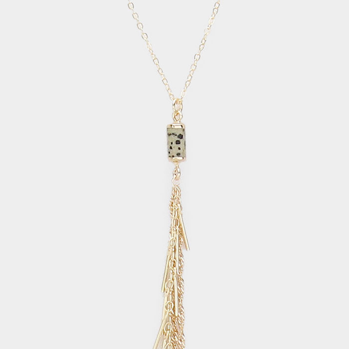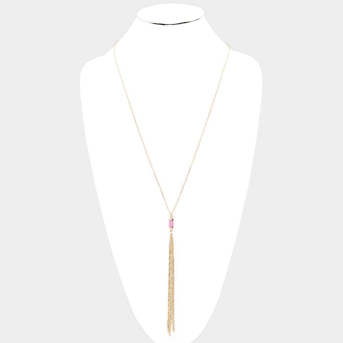 Update your look with the Iron Fringe necklace. Show off its long metal fringe and stone accent to make a statement of effortless style! Add a bit of punk flair to your everyday wardrobe with this gorgeous piece of jewelry. It's sure to make you stand out!