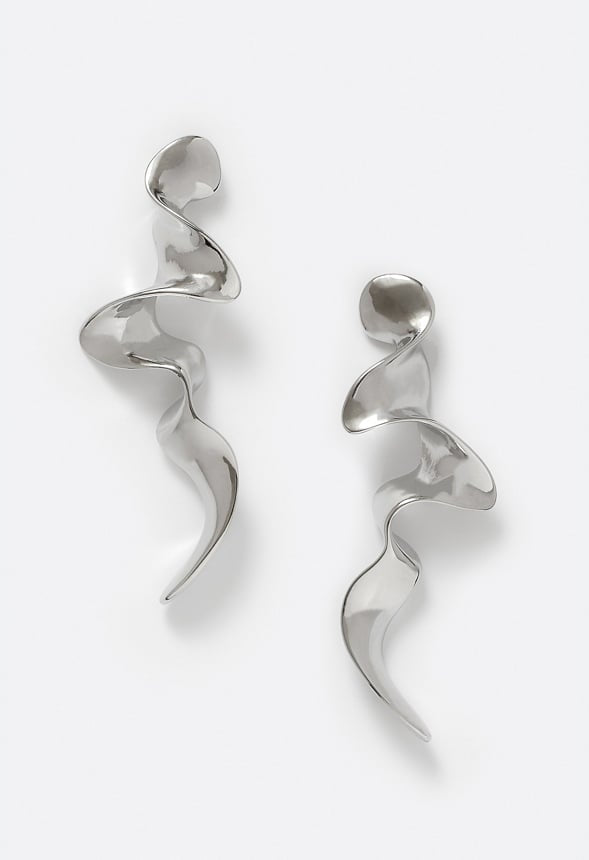 2.5” long shiny silver color metal with post back. Abstract shape that’s light weight and paired with anything for day or night.