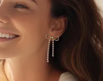 Experience a unique touch of elegance with our Man of the Bows earrings. Adorned with rhinestone details, these bow-shaped earrings add a subtle sparkle to any outfit. Elevate your style with these beautifully crafted accessories.