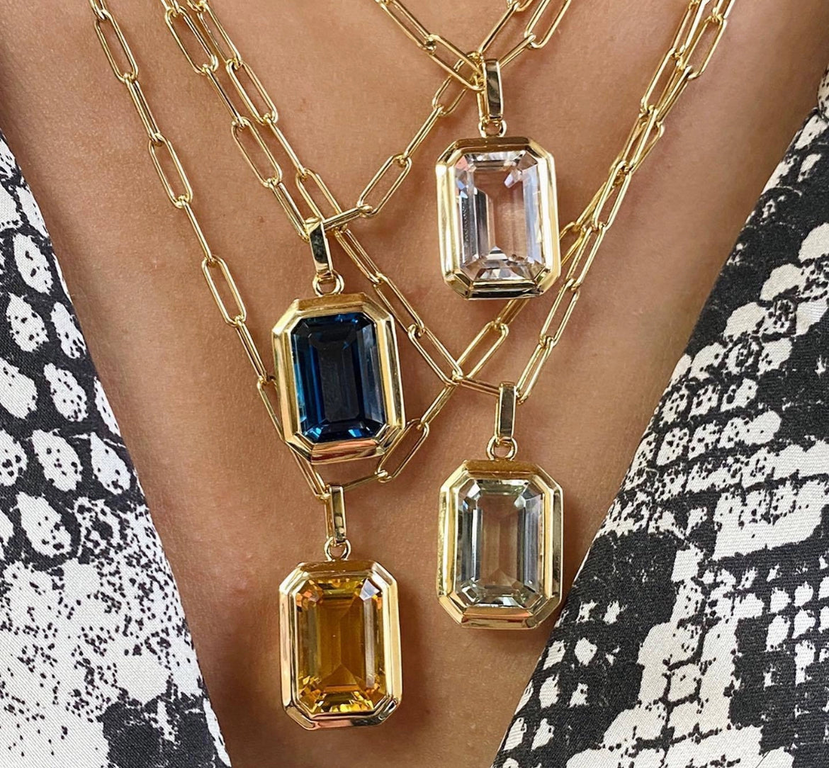 Add some sparkle to your party outfit with Rock Party! This chic necklace features a stunning emerald cut rhinestone, available in green or clear, on a stylish paper clip chain. Elevate your look and be the center of attention at any event. Go on, rock your style!