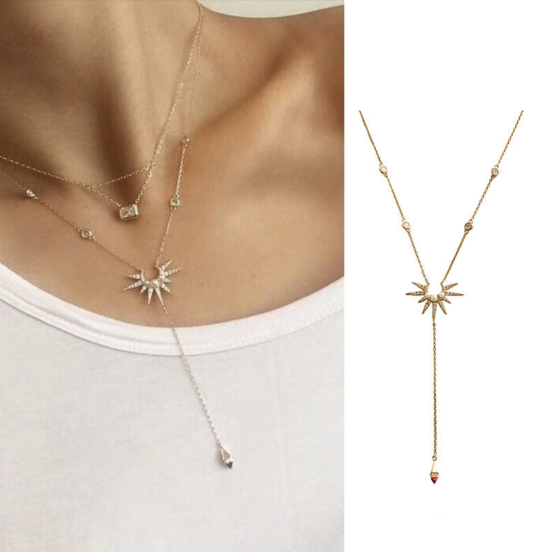 This gold tone star y drop necklace with pearls is just darling!